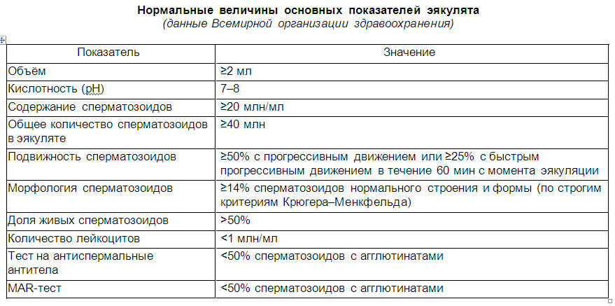 Нормальные величины основных показателей эякулята